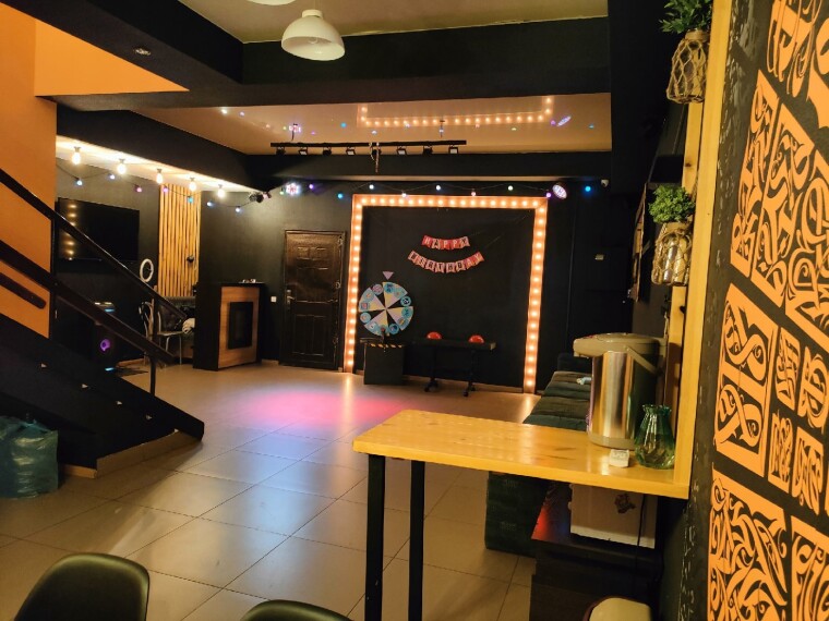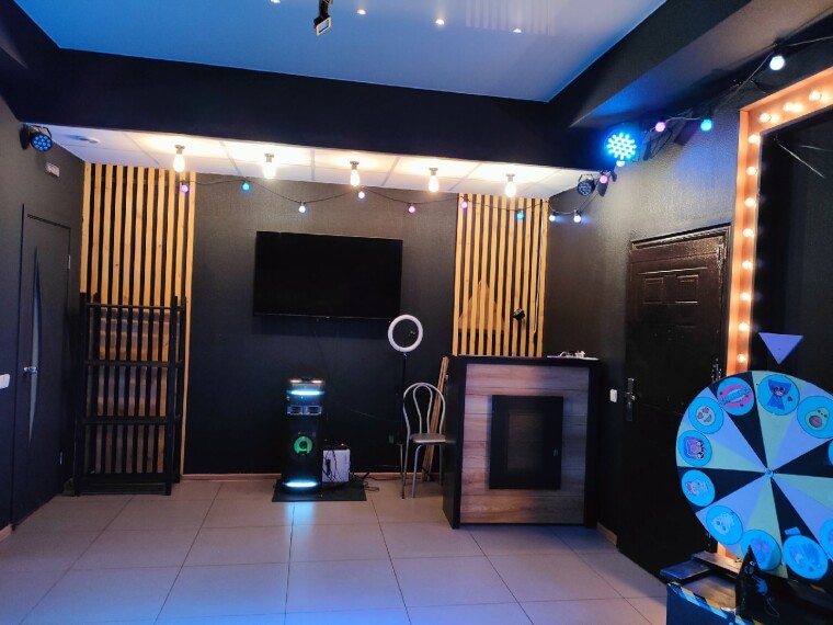 Уютная ламповая атмосфера студии, пайеточная фотозона, танцпол и светомузыка, небольшие комнаты для квестов и банкетная зона на 15 человек. Студия идеально подходит для праздников небольшой компанией