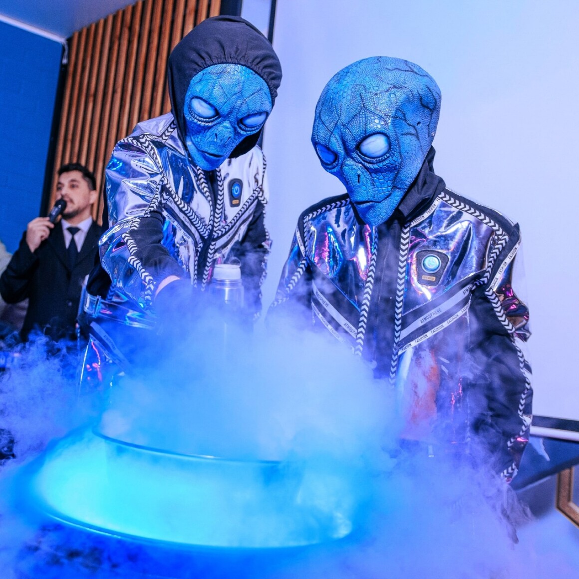 Описание: Мистическая, атмосферная и при этом очень веселая программа, на которой встреча с инопланетным разумом гарантирована! Агенты Мулдер и Калли нуждаются в помощи, ими обнаружен таинственный ящик внеземного происхождения. Раскрыть секреты ящика, выполнить задания штаба, установить контакт с внеземной цивилизацией под силу только дружной и сплоченной команде! Разгадав все загадки НЛО ребятам предстоит встреча с реалистичными инопланетянами. Крио-шоу пришельцев с коктейлями, большим взрывам произведет Вау-эффект на детей и взрослых.