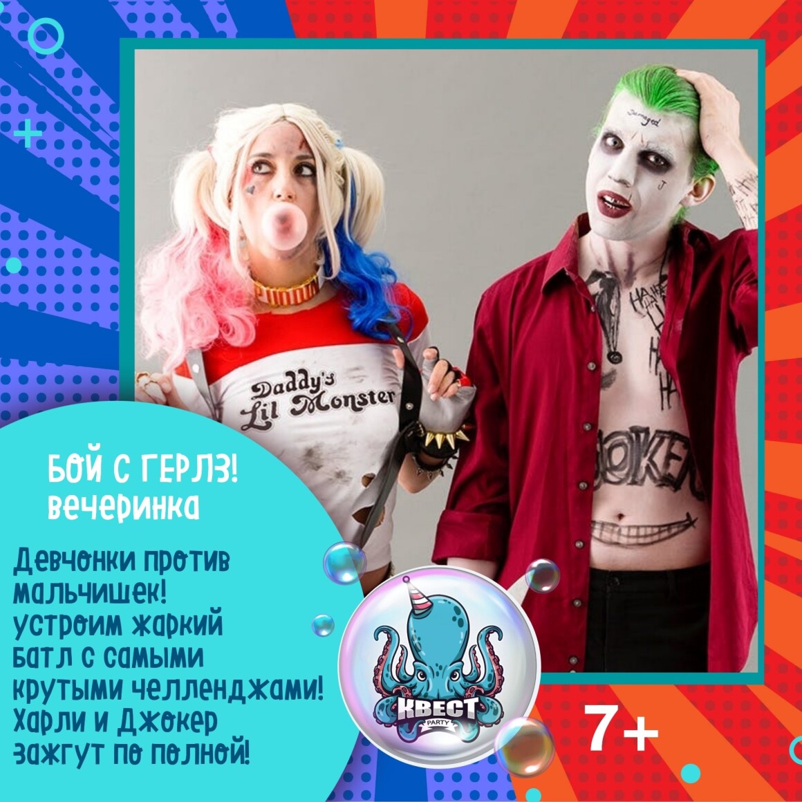 Челлендж вечеринка с Харли Квин и Джокером. Для детей от 8 лет.